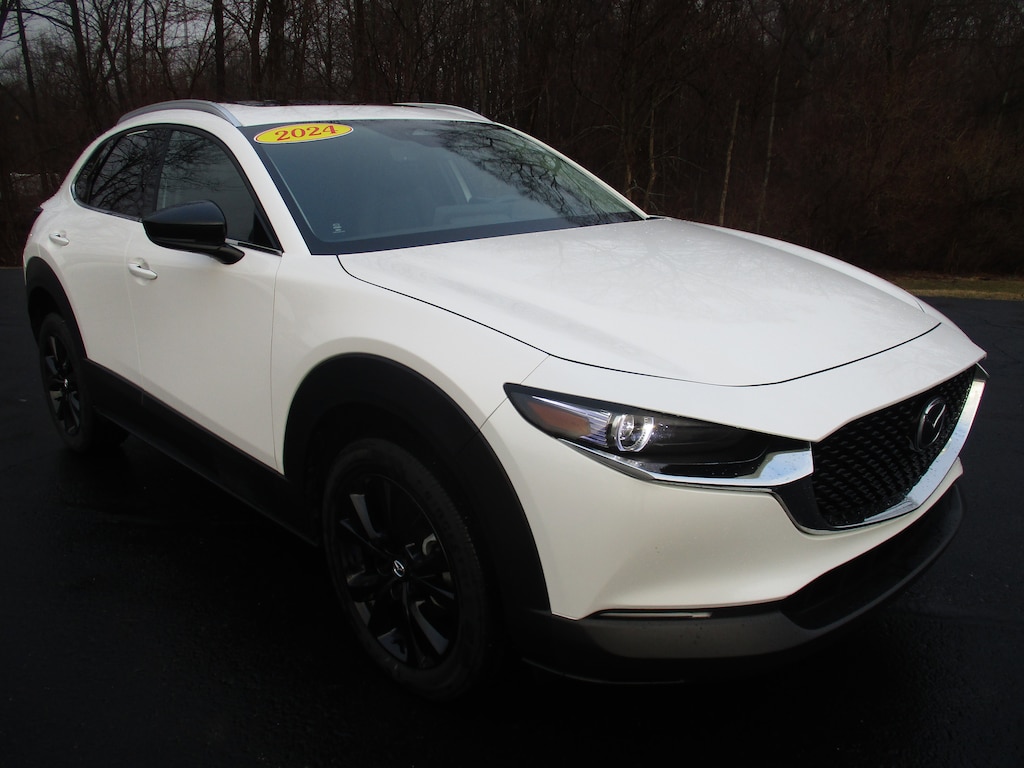 Trustworthy and worry-free, this Used 2024 Mazda CX-30 2.5 Turbo Premium Package packs in your passengers and their bags with room to spare. This Mazda CX-30 features the following options: SNOWFLAKE WHITE PEARL MICA PAINT CHARGE, SNOWFLAKE WHITE PEARL MICA, HIGH WALL ALL-WEATHER FLOOR MATS, BLACK W/BROWN, LEATHER SEAT TRIM, BLACK LUG NUTS & BLACK WHEEL LOCKS, Wireless Phone Connectivity, Window Grid And Roof Mount Antenna, Wheels: 18" x 7J Aluminum Alloy -inc: black metallic finish, Valet Function, and Trunk/Hatch Auto-Latch. Carry all your passengers in comfort and style in this trustworthy and dependable Mazda CX-30. You've earned this - stop by Siemans in Bridgman located at 8961 Red Arrow Highway, Bridgman, MI 49106 to make this car yours today! No haggle, no hassle.